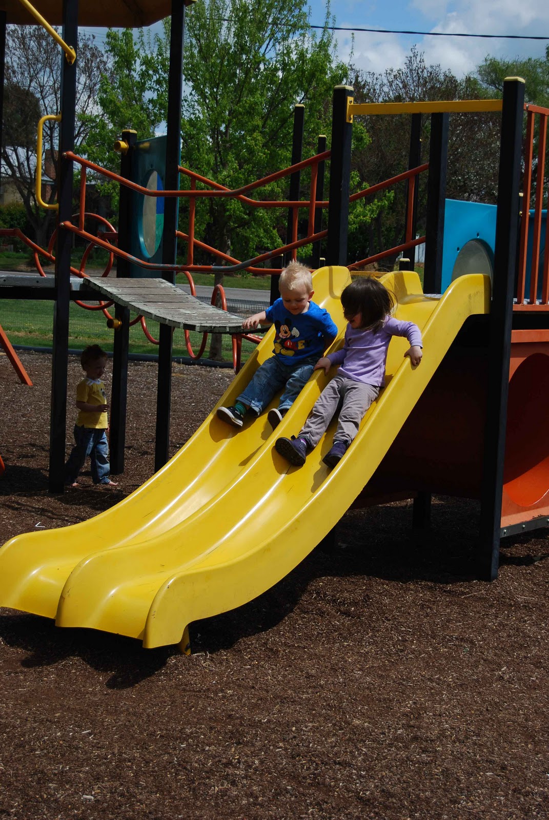 There are lovely big shade trees at this park, and the side-by-side slippery dip was a winner with the children who would race down to see who got to the bottom first.